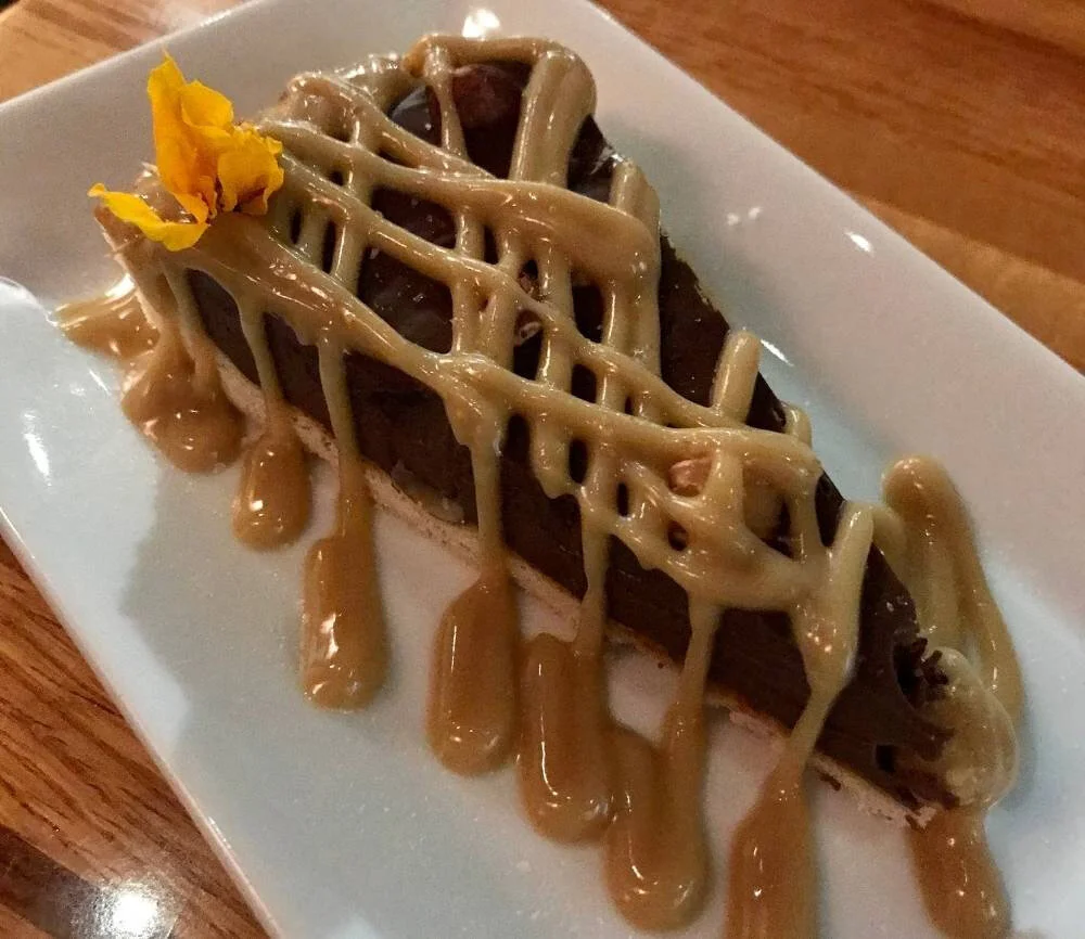 Some of our favorite tastes were of The Last Dance, a bourbon-based cocktail with mango balsamic and ginger that is touted as a Salt Lake City Magazine contest winner, and the barbecue jackfruit pizza with cashew-chive cheese and almond Parmesan on a gluten-free crust. But the best part was dessert: a salted caramel chocolate hazelnut tarte (pictured above), which was a balanced bite with a beautiful presentation.