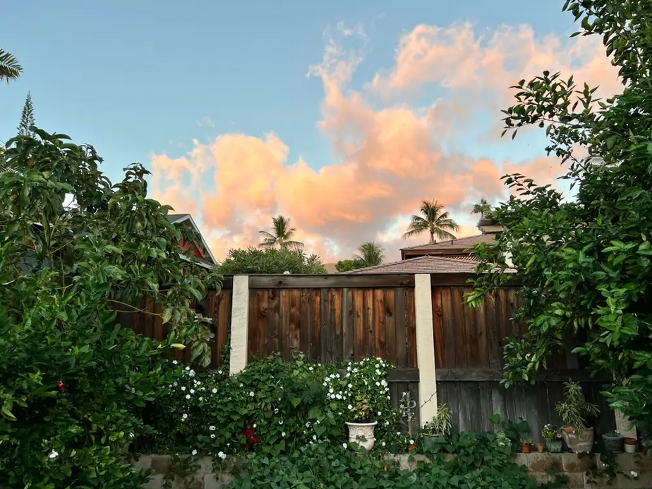 The backyard of my childhood home (prior to the Lahaina fire), where I lived with my family due to the high price of rent in Hawaii.