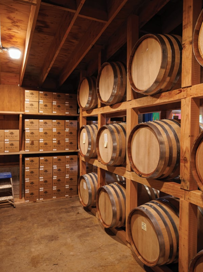 Some batches age for months in toasted American white oak barrels. // Photo by Aaron K. Yoshino