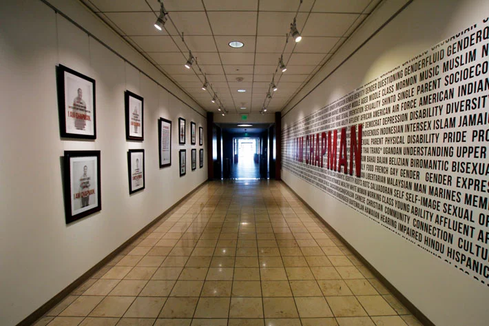 The “I Am Chapman” exhibit in the Student Union gallery demonstrates the diversity of students on Chapman’s campus.